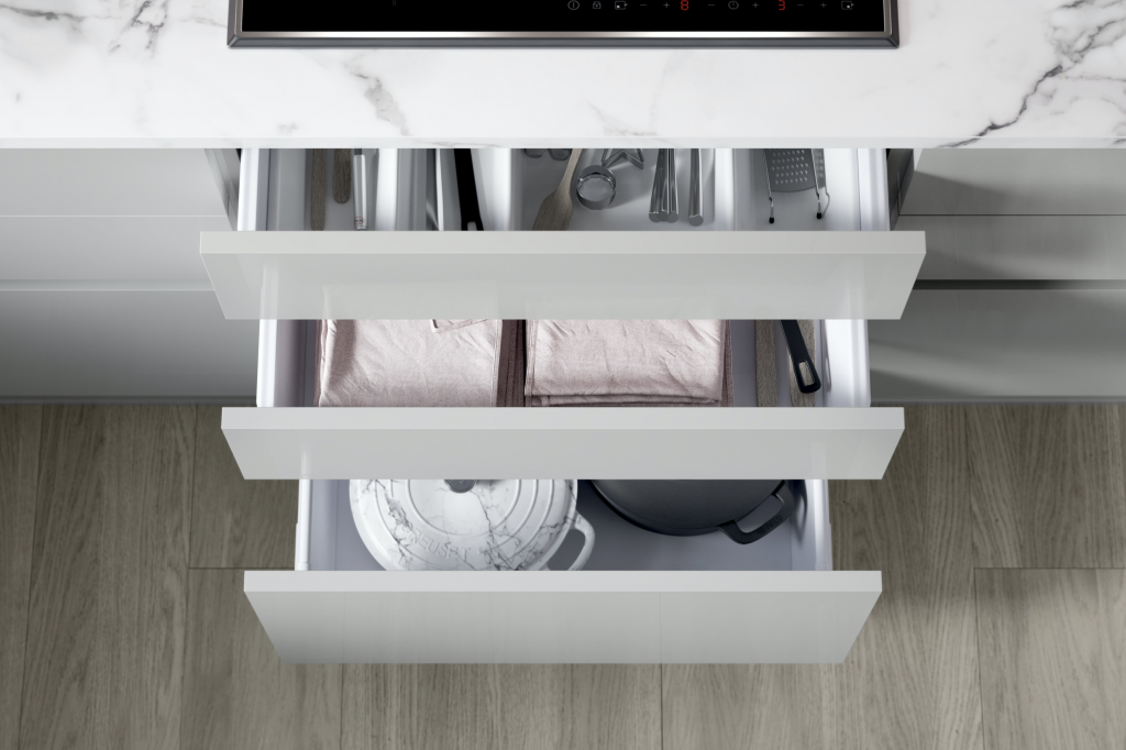 想想集成的酒架,餐具隔板,内置的箱子,神奇的角落,香料架和拉出式食品柜等等。你对厨房内部做得越多,你就能创造更多的自由工作空间,这样你就可以让你的厨房空间闪闪发光!