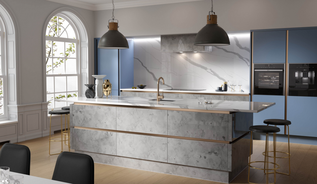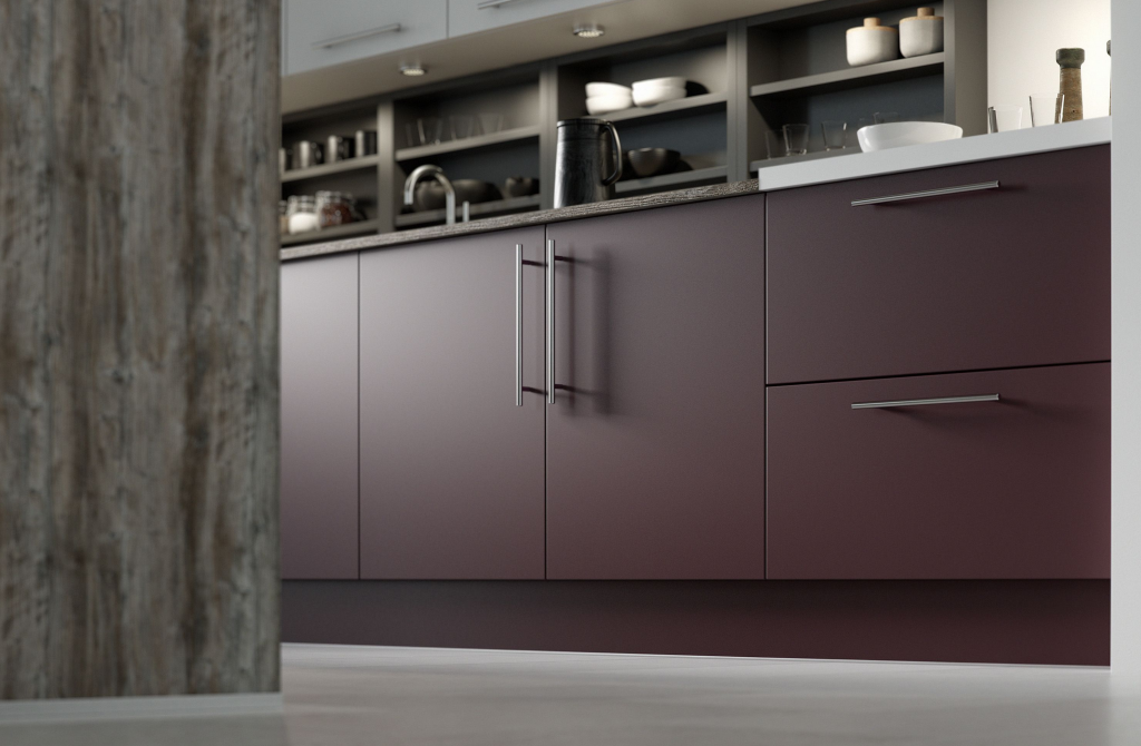 搭配自然主题的橱柜,如雷恩的元素范围颗粒和纹理像混凝土橡木,水洗混凝土更明亮的阴影,甚至金属夜晚戏剧性的外观。