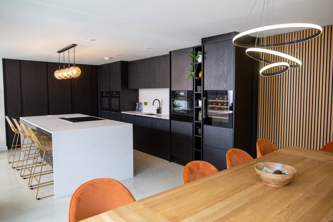 我们的光滑,无柄木纹正面是一个极好的选择,当代厨房爱好者谁想要一点工业风格。Wrenovator Aimee选择了纹理Nero谷物来创造一个真实的声明。