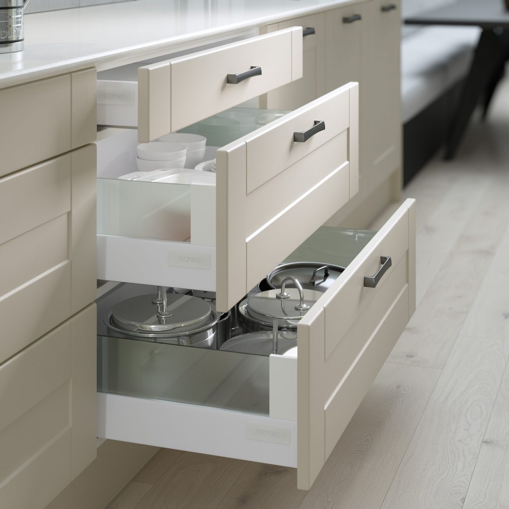 根据你如何组织你的锅碗瓢盆抽屉使用它们。常用的需要在前面或容易烹饪时可以节省时间和减少压力。深抽屉提供空间为所有你的锅,锅和滤器和计划在你的基础魔法角落单位没有橱柜空间被浪费了。如果你有空间,一个杂物间的价值投资提供最大的存储,这是完美的地方来存储项目使用的频率更低。