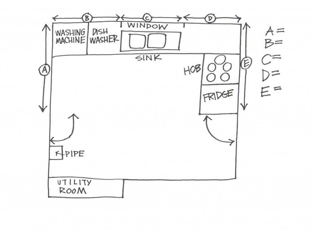 接下来(可能是最重要的)要考虑的事情是你的厨房尺寸。我们将需要这些来帮助为您的空间创建最佳解决方案。我们有一个完全指南到在线测量你的厨房,但简而言之,在进入Wren之前,你需要做以下事情:
