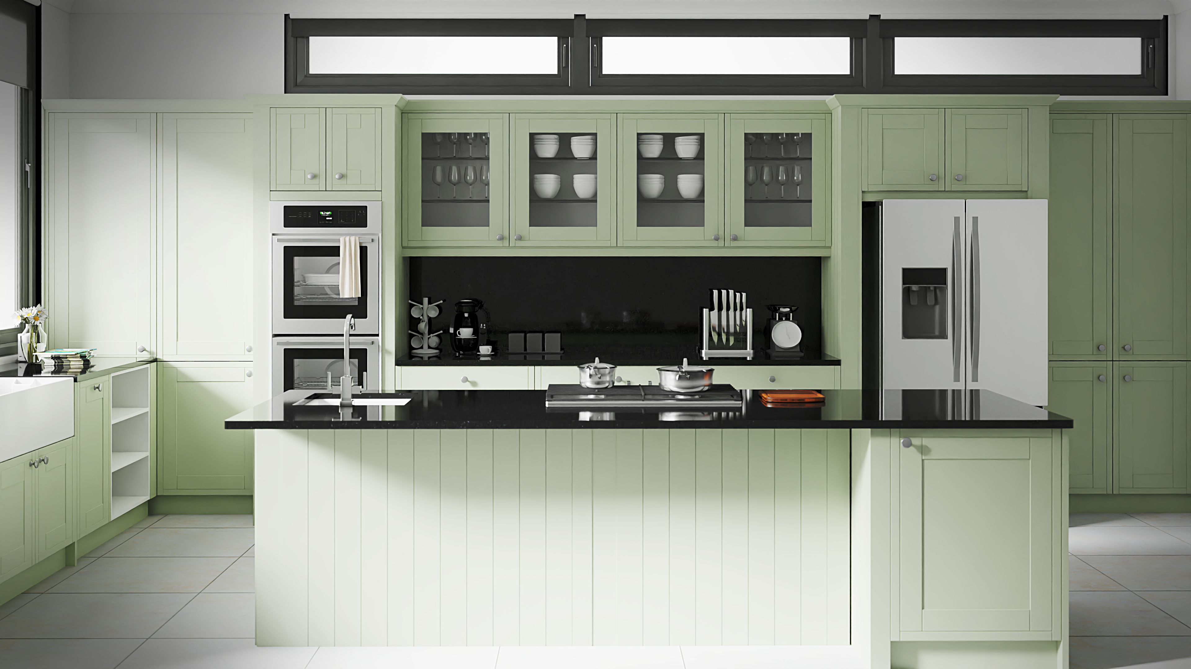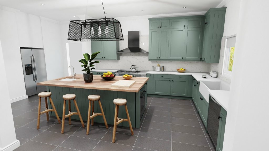 看看我们的Infinity Plus系列和Shaker Chelsea风格,在森林绿色。为了降低成本,可以考虑把大理石台面和后挡板换成华丽的白色石英。你不仅可以享受到同样美丽的波纹效果,而且石英比大理石更容易处理。
